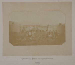 [Algerie] Chabet El Ameur en construction. 1878. Epreuve sur papier albuminé (13,5 x 22 cm) collée sur carton (légende imprimée). Fanée.