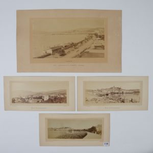 Gasquet (A.) 3 vues panoramiques de Cannes. Vers 1880. Epreuves sur papier albuminé (8,3 x 22,1 cm) collées sur carton. A. Gasquet, photographe à Cannes, boulevard de la Croisette. On joint une autre vue panoramique par W. de Bray, 1049, boulevard...