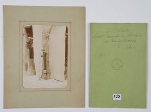 manuscrit de l'auteur sur la couv. à la Société française de Physique à Paris, cachet humide de réception sur la couv. et la première page de texte daté du 24 janvier 1 876. Rarissime tiré à part de cet article de physique illustré par la photographie. On joint une photographie de la même époque d'un instrument de physique collée sur carton.