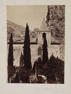 [Moustiers] 2 vues de Moustier (Eglise et vue générale du village). 1878. 2 épreuves sur papier albuminé (15,5 x 12 cm) collées sur carton. Beaux tirages.