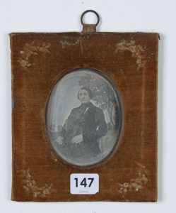 [Portrait] Portrait de jeune homme. Vers 1845. daguerréotype ovale (7,5 x 6,2 cm. env.) sous cadre en velours de l'époque.
