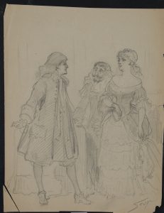 Stop Une caricature et un dessin de genre au crayon. 2 dessins (env. 250 mm x 195 mm)