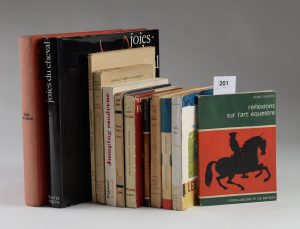 Dressage simplifié, flexions, 1952 (broché) - Licart, Perfectionnement équestre, 1963 (toile éditeur sous jaquette illustrée) - Oliveira, Réflexions sur l'art équestre, 1965 (broché) - Mauvy, Le cheval de pur sang arabe, le cheval barbe, 1964 (broché) - Razac, Acheval ! Renouveau d'un art éternel, 1938 (broché) - Labatut, Souvenirs de cavalerie, 1968 (broché) - Puget, Les chasses à cheval, 1952 (broché) - Benoist-Gironiere, Joies du cheval, 1969 (in-4°, toile rouge éditeur, 2 exemplaires, l'un avec la jaquette illustrée).
