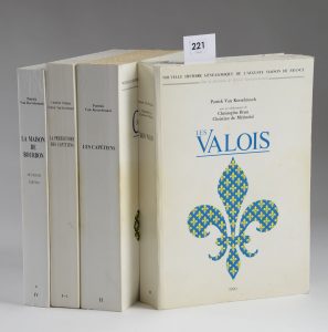 [Génealogie] / Van Kerrebrouck (Patrick) 4 ouvrages de P. Van Kerrebrouck. 4 vol. grand in-8° brochés. Très bon état. La Maison de Bourbon, 1256-2004 (2004) - La préhistoire des Capétiens, 481-987 (1993) - Les Capétiens, 987-1328 (2000) - Les...