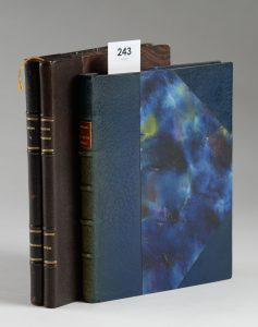 avec coins, dos à nerfs, pièce de titre en maroquin rouge, tête dorée. Reliure signée Kauffmann-Horclois. Couvertures conservées. Dos insolé. 181 pp., (1) f. Exemplaire sur papier d'Arches à la forme (n°210 / 400). On joint : Duhamel (Georges) : Confession de Minuit. 25 bois originaux de Hermann Paul. Paris, Le Livre de Demain, s.d. Envoi autographe signé de l'auteur sur le faux-titre. Chateaubriant (A. de) : La Brière. 24 bois originaux de R.-Y. Creston. Paris, Le Livre de Demain, s.d. Ces deux derniers volumes, de format grand in-8°, reliés en demi-chagrin tête-de-nègre, dos à 4 nerfs ornés de doubles filets dorés, têtes dorées.