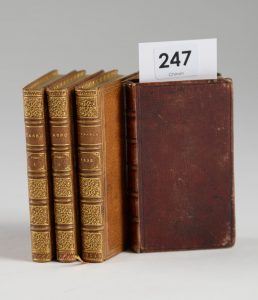 dorés, encadrement d'un triple filet doré sur les plats, filet doré sur les coupes, dentelle dorée intérieure, tranches dorées. Reliures de la seconde moitié du xixe s. T rès bel exemplaire. On joint un autre minuscule du même éditeur : M.T. Ciceronis libri de officiis de senectute et de amicitia. Londres, C. Corrall, aux frais de G. Pickering, 1821 . 1 vol. in-32, maroquin rouge, dos à faux-nerfs orné de petits fleurons à froid, encadrement d'un filet à froid sur les plats, tranches dorées. Reliure du temps un peu fanée.