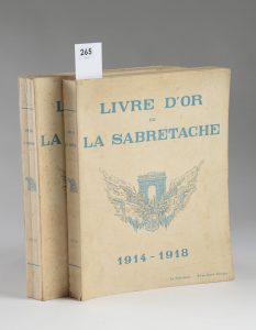 [Sabretache] Livre d'or de la Sabretache 1914-1918. Paris, La Sabretache, 1923. 2 vol. in-4° brochés, couv. ill. défraîchies. (6) ff., 67 ff. portant chacun un portrait photographique, Xxvii ff. portant chacun un portrait photographique, (4) ff....
