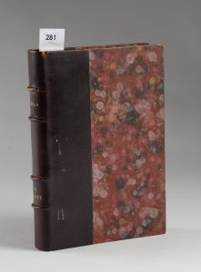 Zola (Emile) La Curée (...) Compositions de Georges Jeanniot. Paris, Emile Testard, 1894. 1 vol. in-4°, demi-chagrin brun, dos à 4 nerfs avec titre doré, tête dorée. Reliure de Meyer & Delahaut. Dos légèrement insolé, épidermures sur les...