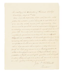 [LAFAYETTE, Gilbert du Motier, marquis de] Lettre autographe de John T. Kirkland, Président de Harvard, et document signé par J. T. Kirkland (3) Harvard College, 21 août 1824