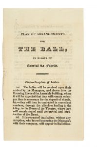 [Imprimé]. Plan of arrangements for the Ball in Honour of General Lafayette [Baltimore], [10 octobre 1824] 4 pp. in-8