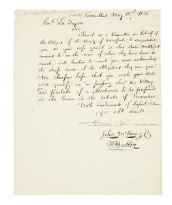 [LAFAYETTE, Gilbert du Motier, marquis de]. Lettre autographe signée par William Tudor, Consul ; document signé par le Commodore Isaac Hull (2) Lima, 7 mars 1825 3 pp. in-4, papier filgrané “W Weatherley 1822"
