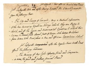 LAFAYETTE, Gilbert du Motier, marquis de [Toast 29] Document autographe signé Lancaster, 27 juillet 1825 12 lignes