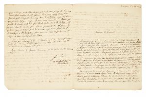 LA FIN DU FAREWELL TOUR. EXEMPLAIRE DE LAFAYETTE. SUPERBE LETTRE DU GRAND ÉCONOMISTE FRIEDRICH LIST À LAFAYETTE, SON PROTECTEUR POUR UN TEMPS. IL LUI DEMANDE ARGENT ET EMPLOI [En français]. Il discute le statut de la langue allemande aux États Unis, parle de sa triste vie et annonce son intention de rester à Philadelphie. Le français de F. List, peu maîtrisé, fait la part belle à de charmants germanismes : “les renseignements que j’ai pris pour m’établir dans ce pays, ou j’espérai voir finir enfin mes longues souffrances me montrent une situation bien pénible. Il n’y a rien à faire ici pour moi avec une gazette allemande. Cette langue va s’éteindre en Pennsylvanie. Les hommes instruits, de la race germanique, lisent les gazettes anglaises. Les autres, parlent et écrivent un patois allemand, une langue grossière, que je ne saurais ni parler ni écrire" etc. [JOINT] : 2. [Imprimé]. [Prospectus publicitaire pour une nouvelle revue en langue allemande de Frederick List]. Sir, You are no doubt aware..., Lancaster, 7 3. L.a.s. de Friedrich List à Georges Washington Lafayette, “The report of the sickness your venerable father cause great affliction", 2 pp. in-4, Harrisburg, 2 juillet 1826 The great German economist Friedrich List (1789-1846), developer of the National System of Innovation, forefather of the German historical school of economics and theorist of European economic union, is thought by many to have inspired Japanese economic policy after the Second World War as well as the reforms in China after Mao. In the first letter he discusses the status of the German language in American scholarly discourse and the wisdom of learning English. Most of the letter devoted to a description of his desperate life circumstances. He ends by stating his intention either to settle in Philadelphia for the sake of his family or to become a woodsman in Ohio. Much of his inspiration in its turn deriving from Alexander Hamilton and his American followers. Like Lafayette, List had been a political prisoner in Europe, and had emigrated to America in 1825, where he was to remain until 1832, working first as a farmer and then as a journalist. Lafayette had met him in Paris earlier in 1824 and had offered to travel with him to America.