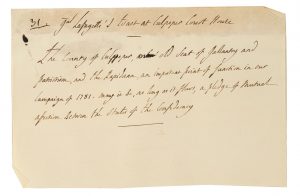 LAFAYETTE, Gilbert du Motier, marquis de [Toast 31] Document autographe signé Culpeper (Virginie), vers le 30 août 1825 5 lignes