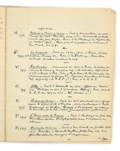MANUSCRIT COMPLET, LE SEUL CONNU, DES DEUX PREMIÈRES NOUVELLES D’ENFANTINES. LES MANUSCRITS LITTÉRAIRES COMPLETS DE VALERY LARBAUD SONT DE LA PLUS GRANDE RARETÉ In-8 (218 x 172mm) 63 pages écrites sur 33 ff., aux encres bleues, noires et violettes, largement corrigées et raturées CONTENU : page de titre commune aux deux nouvelles ; p. 1 : épigraphe du Couperet ; pp. 3-23 : Le Couperet ; page 24r. : titre Rose Lourdin ; page 24v. : épigraphe de Rose Lourdin ; pp.25-32 : Rose Lourdin ; p. 33r. et v. : liste de ses manuscrits par Larbaud. Pagination continue avec saut de numérotation entre les pages 1 et 3. CAHIER à couverture de papier beige avec titre des deux nouvelles et nom de l’auteur, écrits par Larbaud sur le premier plat de la couverture, à l’encre violette et au crayon noir. Feuillets interlignés. Chemise de toile bleue dominotée de style Art déco, probablement réalisée pour Georges-Emmanuel Lang, puisque signalée dans sa vente PIÈCES JOINTES : lettre autographe signée de Valery Larbaud au collectionneur Georges-Emmanuel Lang, datée du 18 novembre 1921 (deux pages in-4 à l’encre noire. Papier bleu avec en-tête imprimé, enveloppe, le tout monté sur onglet à la fin du cahier) - une carte postale de Valery Larbaud adressée à Georges-Emmanuel Lang PROVENANCE : Georges-Emmanuel Lang (cat. 1925, I, n° 281) Les manuscrits de Valery Larbaud sont d’une rareté légendaire, le plus souvent détruits lors de la première mise au net ou donnés sans retour à la NRF. Larbaud ne gardait que quelques pages du brouillon de ses œuvres, « comme témoins ». Ce cahier contient deux nouvelles complètes d’Enfantines, Le Couperet et Rose Lourdin, qui formeront les deux premiers récits de son remarquable recueil de textes sur l’enfance. Ces deux nouvelles sont rédigées à la suite l’une de l’autre. Rose Lourdin sera « étoffée » dans la version définitive publiée. A la fin du cahier, Larbaud établit lui-même une liste des manuscrits d’Enfantines, dont il a gardé la trace, avec dates et détails. Ainsi lit-on : « Le Couperet. Ecrit en 1909-1910, à Paris, Vichy, Valbois, Londres etc. Paru à La Phalange. Brouillon détruit. Ce cahier contient le ms. ». Puis, « Rose Lourdin. Commencé en 1910 à Paris. Ce cahier contient le second ou troisième ms. La rédaction définitive a été achevée à Port-Erin (Ile de Man) le lendemain du couronnement de Georges V. 1910. Premiers brouillons détruits. Ms définitif à la NRF (?) [sic] Paru à la NRF ». L’auteur de Fermina Marquez devait sans doute prendre conscience du goût de certains (« riches ») amateurs pour ses manuscrits en établissant cette liste. C’est ce qu’indique clairement la lettre jointe à ce cahier, adressée au collectionneur Georges-Emmanuel Lang, à la date du 18 novembre 1921. Larbaud avoue posséder peu de manuscrits de ses œuvres. Il y évoque le sort de Fermina Marquez et d’« un manuscrit du Petit Manuel d’idéal pratique, un ouvrage que j’ai écrit de 17 à 20 ans, que je n’ai jamais publié, dont j’ai détruit tous les brouillons et manuscrits excepté ces deux pages (gardées comme « témoins ») et qui m’a servi de base pour quelques unes des Enfantines ». Finalement, Georges-Emmanuel Lang réussira à acheter ces deux Enfantines qui figureront dans sa vente, en 1925, avec un autre manuscrit de Larbaud, Amants, heureux amants, texte plus tardif, qui rejoignit successivement les collections de Pierre Guérin, Du Bourg de Bozas et Bernard Malle. Si les manuscrits de Larbaud sont déjà rares en eux-mêmes, ceux d’Enfantines le sont particulièrement. Ce cahier formé de deux nouvelles entières des mythiques Enfantines, amplement corrigées et raturées, constitue un remarquable témoin d’une des plus anciennes œuvres de Valery Larbaud. Enfantines constitue le plus ancien projet littéraire de Valery Larbaud. Le sujet de la nouvelle Le Couperet lui fut inspiré par une circonstance réelle remontant à sa sixième ou septième année sans qu’il ait alors la moindre notion d’une expression littéraire. Mais le désir de raconter cette histoire lui revint à maintes reprises au cours des années suivantes jusqu’à ses dix-sept ans. Larbaud commença à cette époque la rédaction du Petit Manuel pratique narrant les histoires d’un garçon de douze à quatorze ans qui découvre les contrariétés de l’amour et l’incompréhension des adultes. L’épisode où le jeune héros se blesse volontairement avec une lame donnera son titre à la nouvelle en devenir, Le Couperet. Larbaud travailla régulièrement à cette nouvelle jusqu’à ses vingt-et-un ans puis l’abandonna. En 1910, il reprit sa nouvelle et la termina, avec plusieurs autres, également commencées au lycée, dont Rose Lourdin. Les amours enfantines de ces nouvelles sont racontées à travers un regard juvénile, attentif à certains détails insignifiants au monde des adultes et dont les sentiments sont encore préservés du temps et de la dégradation. Cinq de ces huit futures Enfantines (dont les deux nôtres) parurent en revue de 1909 à 1914. Le 27 juillet 1911, Valery Larbaud écrivait à André Gide, alors à Londres : « Dites moi ce que vous pensez de Rose Lourdin. Je suis inquiet ». Lequel répondit : « J’aime immodérément Rose Lourdin ». La guerre retarda leur publication en volume. En 1918 les huit nouvelles furent éditées sous le titre commun d’Enfantines, certaines légèrement remaniées depuis leur publication en édition pré-originale. Elles furent l’objet d’une admiration immédiate de Gide et de Proust. En février 1918, Valery Larbaud recevait une nouvelle lettre d’André Gide, dédicataire du Couperet : « vos exquises Enfantines me plongent dans un enchantement sans mélange. Je les lis et les relis chacune. Entre toutes, Le Couperet me paraît une merveille et je me gonfle d’aise d’y voir attaché mon nom ». Un an plus tard,