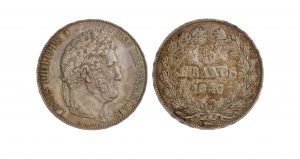 IDEM - 5 francs laurée, 5 francs 1847 Paris, tranche relief. G 678a. Superbe