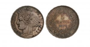 Gvt de DEFENSE NATIONALE (1870-1871). 5 francs Cérès avec légende, 1820 Paris. G 743. De toute beauté.