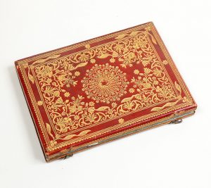 ÉCRIN MÉDAILLIER. Ravissant médaillier du XVIIIe siècle (13,5?×?9,9?cm) en maroquin rouge décoré à l'or aux petits fers (recto et verso). Il contient douze 20 f. or du Consulat à la IIIe République?: Bonaparte An 12, Napoléon I non lauré...
