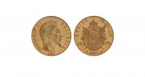 FRANCE. Napoléon III (1852-1870). 50 f. tête nue, 1857 Paris. TTB.