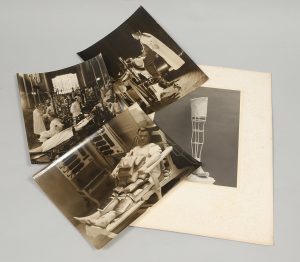 [PROTHÈSES, THÉRAPIE]. LOT DE 10 PHOTOGRAPHIES. Années 1930, épreuves argentiques. 3 photographies [245 x 195 mm] montées sur carton : atelier de prothèses et 2 modèles de prothèses de jambe. 7 photographies [260 x 205 mm] : établissements...