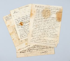 - Lettre-enveloppe repliée [290 x 195 mm], datée du 15 septembre 1733, signée Bremond. Cachet de cire rouge. À l'adresse de M. Michel fils à Pélissanne. Une réparation à l'adhésif.