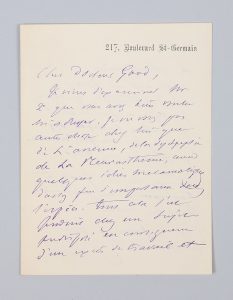 CHARCOT (Jean-Martin). Lettre autographe signée au docteur Good. [Paris], non datée (vers 1885), un feuillet [215 x 145 mm] replié, manuscrit à l'encre violette. Lettre rédigée sur papier à en-tête de l'adresse parisienne de Charcot, 217...