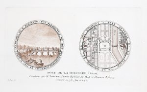 Notice sur la vie et sur les travaux de Jean-Rodolphe Perronet (1708-1794), fondateur de l'École des Ponts et Chaussées. Les planches finales représentent, l'une, le projet du canal de l'Yvette, l'autre le pont de la Concorde (anciennement pont Louis-XVI et pont de la Révolution), figuré dans deux médaillons (l'un pour le profil, l'autre pour le plan au sol).