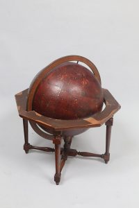 Constitué de 12 fuseaux gravés et coloriés à la main. Le cercle méridien est gravé et appliqué sur bois. La table d'horizon, composée de graduations du zodiaque et du calendrier, est appliquée sur un cercle octogonal en bois. Pieds en bois tournés. Sur les fuseaux sont gravées les dernières constellations connues sous forme de figures. La nomenclature utilisée est celle de l'édition française de l'Atlas céleste de Flamsteed publié en 1776.