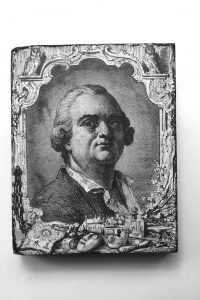 [CAGLIOSTRO] gravé par Thomas Rousseau Portrait de Joseph Balsamo dit Cagliostro. Pièce unique - Bois finement gravé et blanchi (90 x 70 mm) signé en bordure inférieure. Bois gravé illustrant le célèbre Cagliostro encadré de deux chouettes...
