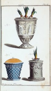 [Art décoratif]. Recueil factice de planches gravées d'art décoratif, pour la plupart coloriées. [Vers 1792-1803]. Un volume in-8 broché, couverture de papier marbré (quelques salissures). 24 planches en couleurs, la plupart dépliantes, dont...