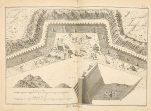 59 planches simples ou double, la plupart illustrant les questions de fortifications, toutes dessinées ou gravées par Robert Bénard ou sous sa direction. Sans page de titre : la pièce de titre au dos a pu être rapportée, et les planches pourraient aussi provenir de l'Encyclopédie in-4 publiée à Genève sous le nom de Pellet vers 1770. Bénard travailla aussi bien pour l'Encyclopédie in-4, que pour l'Encyclopédie méthodique publiée par C.-J. Panckoucke. Table manuscrite de 10 f. reliée à la fin.