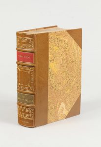 de titre et de tomaison maroquin rouge et vert, data et lieu dorés en queue, caissons ornés aux petits fers et mosaïqués, filet doré aux coupes, tête dorée, couv. et dos conservés [J. Weckesser] (petit frottement sur une coupe en pied). Bel exemplaire de l'édition originale.