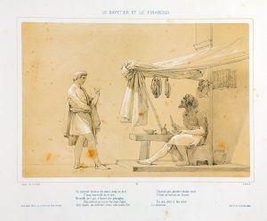 SEURRE aîné. LA FONTAINE. Fables. Recueil de croquis composé et dessiné par Seurre aîné statuaire… Lithographié par Victor Adam. P., Bance, 1849, grand in-folio oblong, [2] ff. (titre, table), 96 planches sur onglets lithographiées en...
