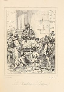 philologique par Ch. Nodier… A Paris, chez N. Delangle, 1824. Deux volumes in-8, [2] f., CXCI-194 p. + [2] f., 405 p., 9 planches sur Chine appliqué gravées notamment par A. et T. Johannot, d'après Devéria, reliure époque demi-maroquin bleu, dos à 5 nerfs, titre et tomaisons dorés, caisson finement ornés, double filet doré aux plats, tête dorées (dos passé, qq. légers frottements, qq. traces digitales mais bel exemplaire).
