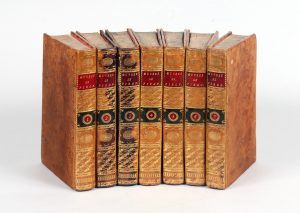 PIRON (Alexis). Oeuves complettes… publiées par M. Rigoley de Juvigny. À Paris, de l'Impr. de M.Lambert, 1776. 7 volumes in-8, reliure de l'époque veau fauve raciné et glacé, dos lisses et ornés, pièces de titre basane rouge, tomaisons...