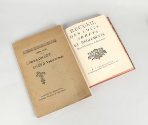 [Valenciennes]. Recueil des édits, arrêts et réglements pour le collège de Valenciennes. À Valenciennes, de l'Impr. de J.B.G. Henry, [1768]. In-4, pagination multiple, bandeaux et culs-de-lampe gravés sur bois, reliure de l'époque veau fauve...