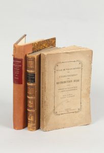 notamment un Mémoire sur un projet de port par Coffyn (1842), avec un grand plan dépliant du débarcadère ; Les Recherches sur les fontaines par J. Cacheux (1857). Provenance : Adolphe Lefrancq (1871-1951), historien d'art, conservateur du Musée des Beaux-Arts de Valenciennes de 1922 à 1943 (ex-libris gravé, aux armes de la ville, et tiré sur Japon).