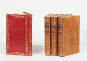 rouge et de tomaison havane, triple filet doré en encadrement sur les plats, roulette dorée bordant les contreplats, tranches mouchetées (menus défauts dont coins frottés mais bel exemplaire).