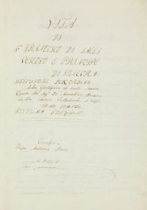Manoscritto cartaceo in 2 volumi in-folio (mm 287x190). Pagine 516; 403. I testi sono preceduti dai sommari. Con correzioni e cancellature nel testo. Cartonato muto coevo ricoperto di carta marmorizzata. (2). Trascritti il primo e il secondo volume dell'edizione del 1805, stampata da Rosa a Venezia. San Francesco di Sales, vescovo di Ginevra e dottore della Chiesa, è il più importante e celebre santo della Savoia. È considerato il padre della spiritualità moderna e ha avuto il merito di influenzare le maggiori figure non solo del "grand siècle" francese, ma anche di tutto il Seicento europeo.