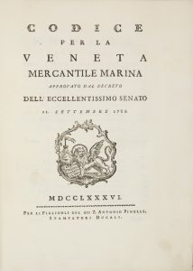 Codice per la veneta mercantile marina approvato dal decreto dell'eccellentissimo Senato 21 settembre 1786. [Venezia]: Per li figliuoli del Z: Antonio Pinelli, 1786.