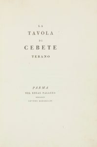 La Tavola di Cebete Tebano. Parma: Nel Regal Palazzo, 1793.