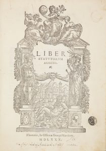 Liber statutorum Arretii. Florentiae: In Officina Georgii Marescoti, 1580.