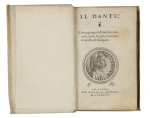 Alighieri Dante, Il dante, con argomenti, & dichiaratione de molti luoghi... In Lione: Per Giovan di Tournes, 1547.