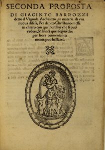 Barozzi Giacinto, Seconda proposta di Giacinto Barrozzi detto il Vignola [...] in materia di una nuova difesa... (Al colophon:) In Perugia: per Andrea Bresciano, 1581.