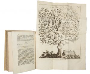 In-4° (mm 205x145). Pagine xii, 257, 2 bianche con 4 tavole fuori testo, di cui 3 ripiegate e una a piena pagina in principio di volume. Ottime condizioni di conservazione. Legatura coeva in piena pergamena con titolo in oro su tassello al dorso. Tagli spruzzati in azzurro. Prima edizione (ICCU ne censisce 3 soli esemplari) di questo trattatello del medico livornese Giovanni Benescia, nel quale si individuano le proprietà benefiche della China per la cura della febbre. Bella e da segnalare la tavola con il lignum febris.