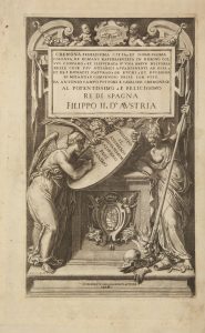 In-folio (mm 338x240). Pagine [8], 88, LXXVIII, 1 carta bianca, 89-119, [29] con 1 grande mappa di Cremona più volte ripiegata (mm 857x465), 5 figure in due tavole fuori testo con i principali edifici della città e 1 mappa più volte ripiegata con la Discrittione dil contado territorio et diocesi di Cremona incise in rame fuori testo. Frontespizio allegorico, al verso ritratto di Filippo II in ovale senza berretto, Apoteosi della città di Cremona a carta +2v, ritratto dell'Autore a carta +4r, vignetta raffigurante l'uscita del Corrocium dalla città a pagina 13, e 33 ritratti in ovale (più uno lasciato vuoto) di personaggi illustri - incluso un secondo ritratto di Filippo secondo, con berretto, a pag. 122 -, il tutto calcografico. Cornice xilografica a inquadrare le pagine di testo e molti splendidi capilettera figurati incisi in legno. Esemplare leggermente rifilato, con alcune carte un po' brunite e fioriture sparse; strappi riparati e rinforzi cartacei al verso della grande mappa, che presenta lievi tracce di muffa, ma nel complesso buona copia. Legatura coeva in vitello spruzzato con titoli e fregi floreali impressi in oro al dorso. Ex-libris al contropiatto. Prima edizione di questa importante e splendida opera su Cremona, impreziosita da due piante della città e del suo contado incise da Davide da Lodi e dai ritratti dei duchi e delle duchesse di Cremona e Milano di Agostino Carracci su disegni di Antonio Campo, autore anche della bella antiporta, dell'allegoria di Cremona e della vignetta con l'uscita del carroccio. Sotto al ritratto di Massimiliano a pag. 104 si legge: «è cavata questa effigie da un quadro à oglio, di mano di Leonardo da Vinci», dipinto oggi perduto. Cfr. Brunet I, 1526: «Edition originale et fort rare d’un ouvrage estimé»; Cicognara 3977; Choix IV, 4257.
