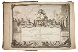 In-folio (mm 400x275). 1 frontespizio allegorico a doppia pagina e 66 carte geografiche incise in rame a doppia pagina entro belle bordure architettoniche, con il testo in due colonne applicato ai lati delle mappe, tutte in bella coloritura coeva. Ampia macchia d'unto alla tavola 23, qualche altra sporadica macchiolina e le prime carte un po' allentate, ma buona copia. Legatura coeva in piena pelle marmorizzata con titoli dorati su tassello al dorso, lisa. Ex-libris Castello di Canale Cuneo al contropiatto. Seconda edizione. Questo atlante, destinato agli allievi della Ecole Royale Militaire, si compone di una prima parte di 51 tavole numerate 1-50 così distribuite: 7 tavole con sfere armillari, globi e i vari sistemi astronomici, 3 carte generali del mondo, 3 mappe dell'Africa, 4 dell'America, 4 dell'Asia e 30 dell'Europa, seguite da 15 carte dettagliate del territorio francese, numerate 1-15. Molte delle carte geografiche sono di o tratte da Louis Brion de la Tour, mentre il testo è opera di Jean Charles Maclot.