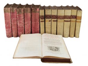 17 parti in 8 volumi in-folio (mm 390x255). Pagine [6], XXXIX, [29], 428; 20, 348. [16], LXXXIV, 366; [14], 319, 1. [24], 609, [1]; [16], 452. [14], 522; [14], 352; [6], 108. [40], 599, [1]; [2], 644. [32], 572; [2], 481, [1]; 139, [1]. [20], 452; [20], 495, [1]. [16], 556; [8], 216. Con 1 antiporta incisa e 1 tavola fuori testo al primo volume. Esemplare genuino con bruniture sparse dovute alla carta del tempo. Frontespizi in inchiostro rosso e nero in principio di volume, in inchiostro nero quelli delle varie parti. Testo in francese, latino e tedesco. Legatura coeva in pergamena rigida con titoli dorati su tasselli applicati ai dorsi. SI AGGIUNGE: Barbeyrac Jean, Histoire des anciens traitez [...] Premiere (-seconde partie). A Amsterdam: chez Janssons a Waesberge, 1739. 2 parti in 1 volume in-folio (mm 442x265). Pagine [8], XII, 474; [2], [6], 387, [1] con 1 antiporta incisa e 1 tavola fuori testo. Esemplare con le consuete bruniture ma bello e in barbe. Legatura in mezza pelle rossa con titoli manoscritti al dorso e piatti in cartone marmorizzato. Minimi difetti. SI AGGIUNGE: Rousset de Missy Jean, Supplement au corps universel diplomatique. A Amsterdam: chez Janssons a Waesberge, 1739. 4 parti in 2 volumi in-folio (mm 442x265). Pagine [14], 187, [3]; [20], 504, 128; [16], 476; [16], 605, [3]. Usuali bruniture sparse ma bell'esemplare in barbe. Legatura in mezza pelle rossa con piatti in cartone marmorizzato e titoli manoscritti al dorso. Dorsi lisi. SI AGGIUNGE: Rousset de Missy Jean, Le cerimonial diplomatique. A Amsterdam: chez Janssons a Waesberge, 1739. 2 volumi in-folio (mm 442x265). Pagine [12], 781, [1] con 5 tabelle fuori testo; [4], 860. Esemplare con le consuete bruniture ma bello e in barbe. Legatura in mezza pelle rossa con titoli manoscritti al dorso e piatti in cartone marmorizzato. Dorsi lisi. (13). L'opera più importante sulla diplomazia e il diritto internazionale, completa di tutti e 13 i volumi e con gli esemplari in ottimo stato e nelle loro barbe. I 5 volumi di continuazione in legatura omogenea fra loro.