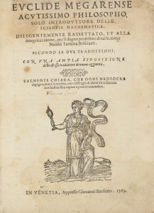 Euclides, Euclide megarense acutissimo philosopho, solo introduttore delle scientie mathematice, diligentemente rassettato, et alla integrità ridotto... In Venetia: Appresso Giovanni Bariletto, 1569.