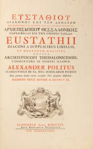Eustathius (arcivescovo di Tessalonica), Commentari in Homeri Iliadem. Florentiae: apud Bernardum Paperinum, 1730-35.